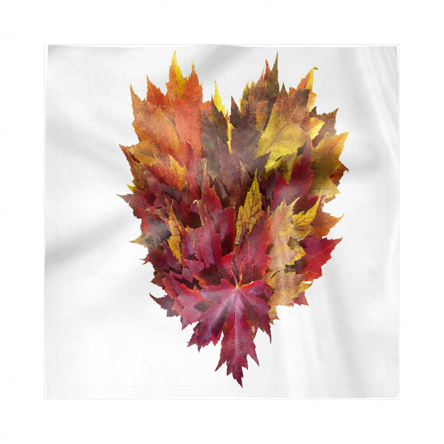 Fall Leaves Decorative Napkins Set Of 4 Mixed Maple Tree Leaves Gathered In The Form Of A Heart Shape Print Silky Satin Fabric For Brunch Dinner Party 12 White And Multicolor By
