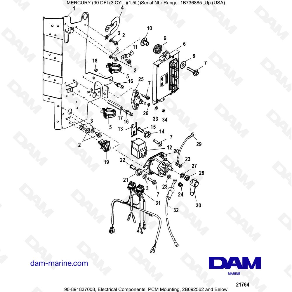 Mercury Optimax 90 Electrical Components Pcm Mounting 2b092562 And Below Dam Marine
