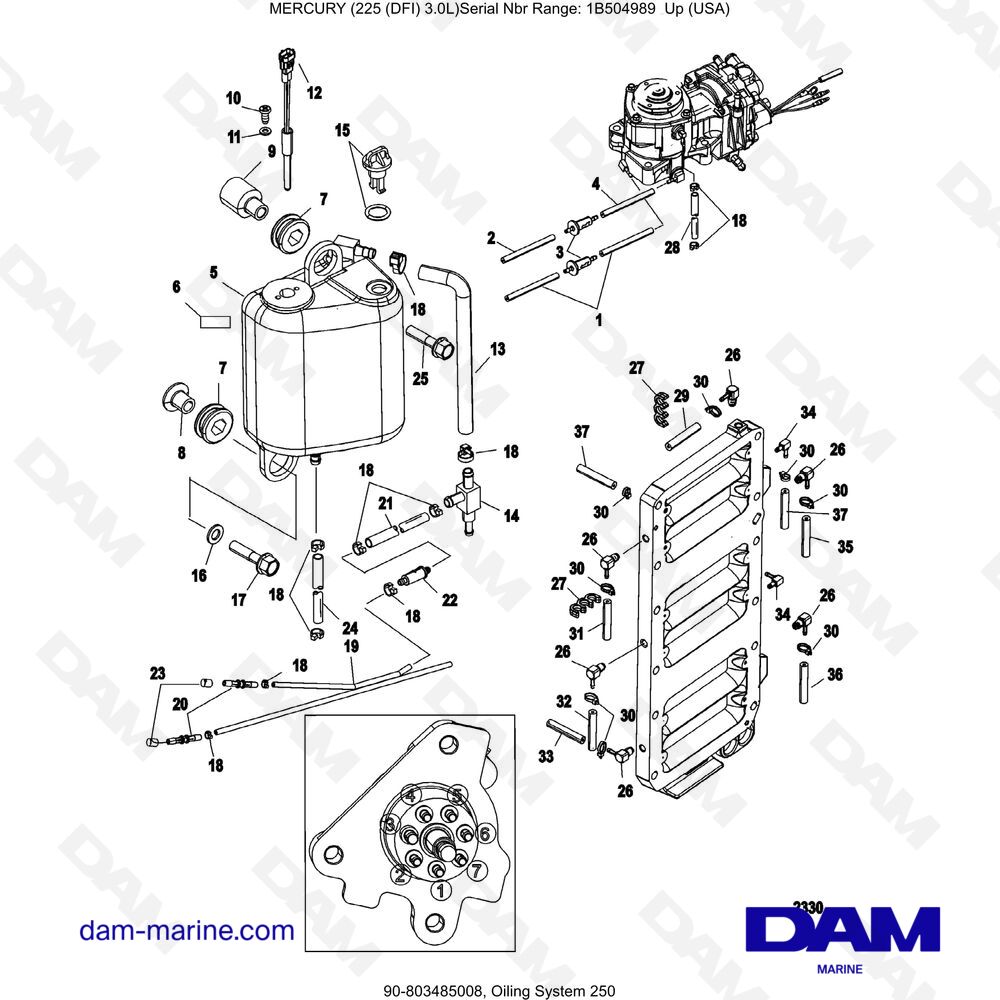 Mercury 225 Dfi 3 0l Oiling System 250 Dam Marine